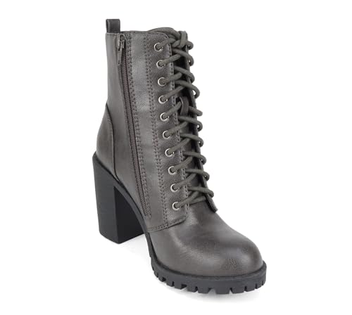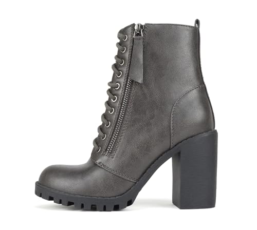 Soda Women’s Malia Faux Lace Up Chunky Lug Sole Combat Boot