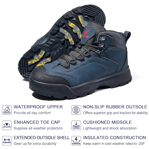 Wondamo Men’s Waterproof Snow Boots Insulated Toe Cap Cold Weather Shoes Non-slip Lightweight Winter Boots