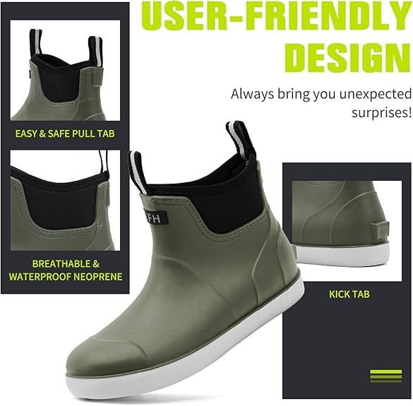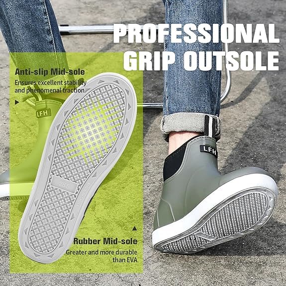 Deck Boots Mens, Rain Boots Anti-Slip Fishing Booties Waterproof Ankle Rain Shoes Rogue Wave Durable Rubber Boots Outdoor Footwear