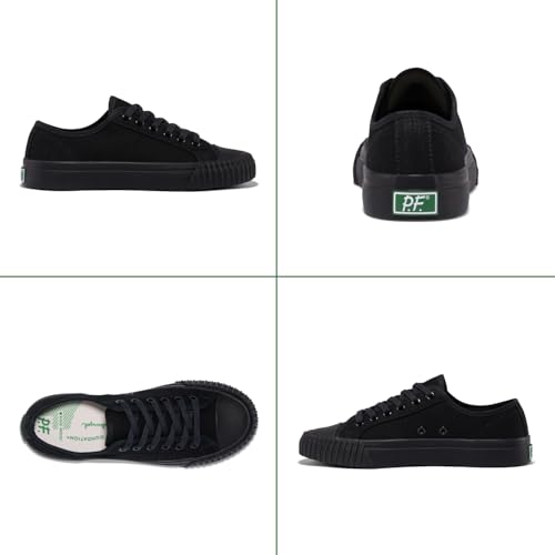 PF Flyers 1993 Black Low Top Sneakers for Men and Women, Original Canvas Casual Sneaker, Unisex All Black Shoes