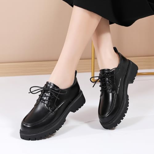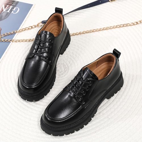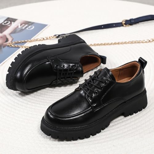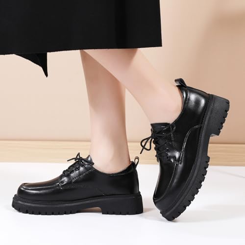 Oxford Shoes for Women Patent Leather Shoe Women’s Platform Oxford Shining Lace-Up Chunky Round Toe Non-Slip Business Casual Comfortable Dressy Office Work Ladies Shoes