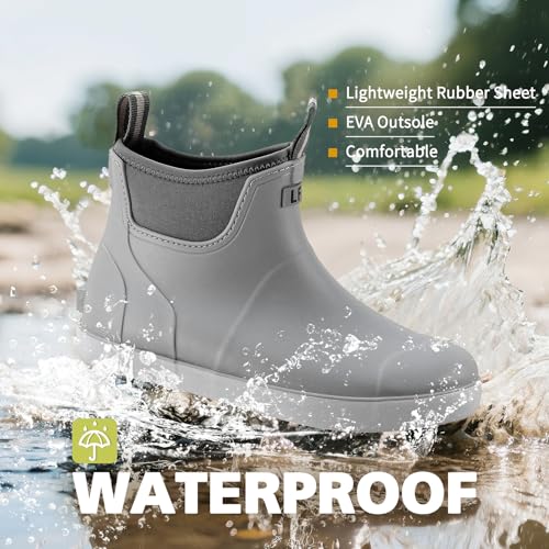 Women’s Deck Boots, Waterproof Ankle Rain Boots with Anti-Slip Traction, Rubber Garden & Fishing Boots for Boating, Camping, Farming & Outdoor Work