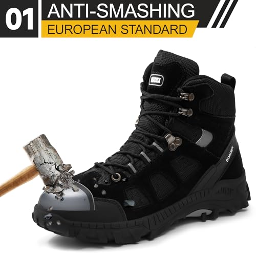 SUADEX Steel Toe Boots for Men Women Indestructible Non Slip Comfortable Work Boot Safety Construction Shoes