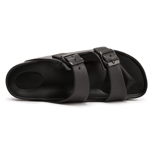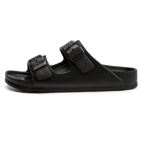 FUNKYMONKEY Women’s Comfort Slides Double Buckle Adjustable Plastics Flat Sandals